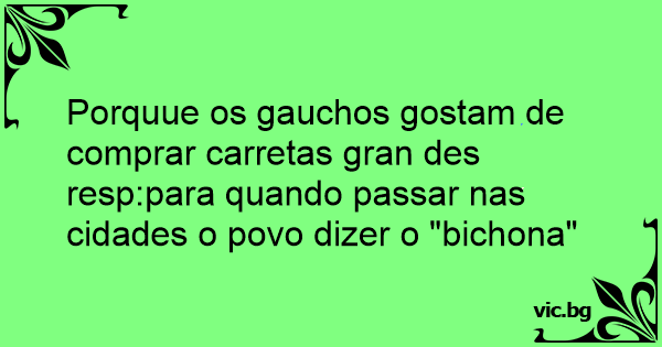 Porquue os gauchos gostam de comprar carretas gran des resp:para quando passar nas cidades o povo dizer o "bichona"