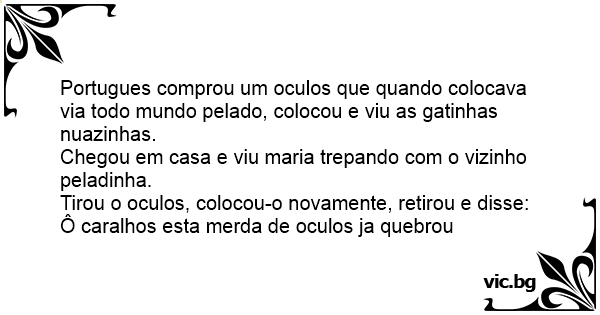 Portugues comprou um oculos que quando colocava via todo mundo pelado, colocou e viu as gatinhas nuazinhas.