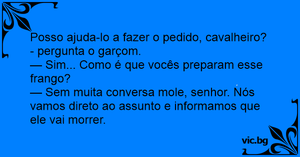 Posso ajuda-lo a fazer o pedido, cavalheiro? - pergunta o garçom.