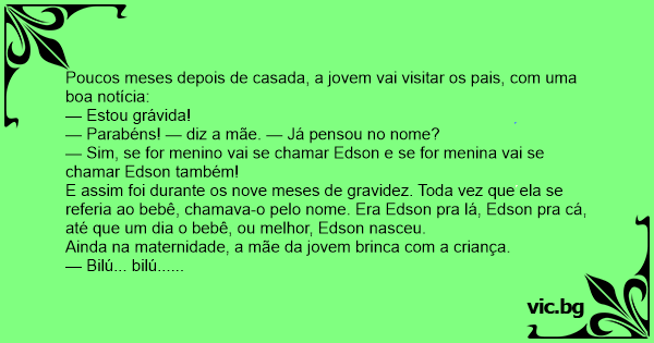 — Sim, se for menino vai se chamar Edson e se for menina vai se chamar Edson também!