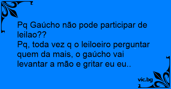 Pq, toda vez q o leiloeiro perguntar quem da mais, o gaúcho vai levantar a mão e gritar eu eu..