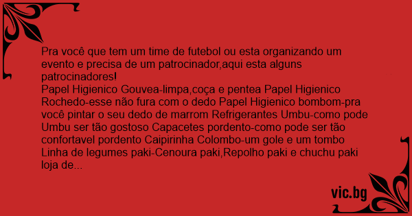Pra você que tem um time de futebol ou esta organizando um evento e precisa de um patrocinador,aqui esta alguns patrocinadores!