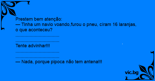 — Tinha um navio voando,furou o pneu, círam 16 laranjas, o que aconteceu?