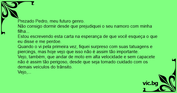 Prezado Pedro, meu futuro genro.