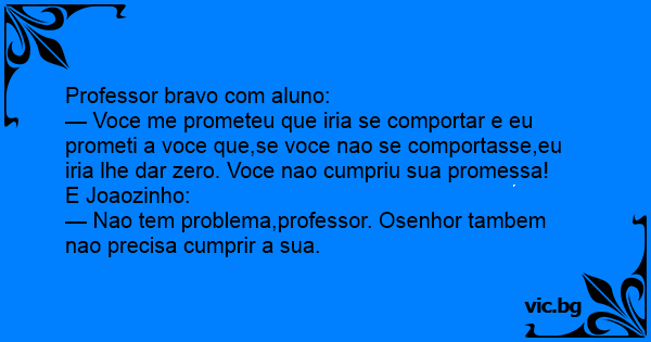— Nao tem problema,professor. Osenhor tambem nao precisa cumprir a sua.