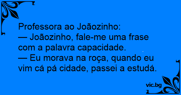 — Joãozinho, fale-me uma frase com a palavra capacidade.