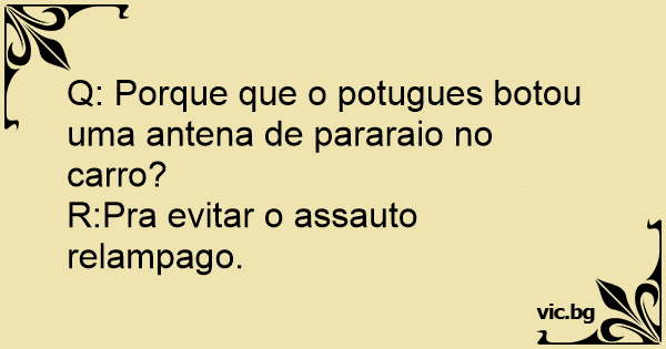 Q: Porque que o potugues botou uma antena de pararaio no carro?