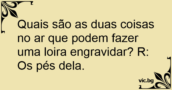 Quais são as duas coisas no ar que podem fazer uma loira engravidar? R: Os pés dela.