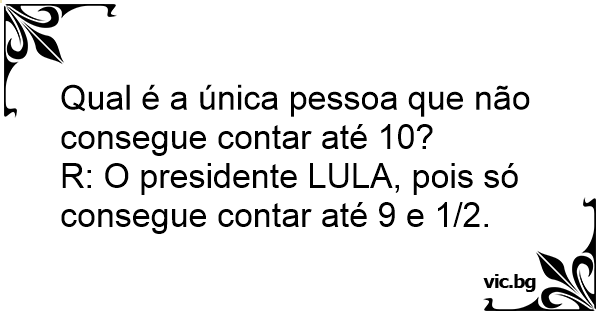 R: O presidente LULA, pois só consegue contar até 9 e 1/2.
