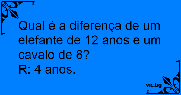 Qual é a diferença de um elefante de 12 anos e um cavalo de 8?