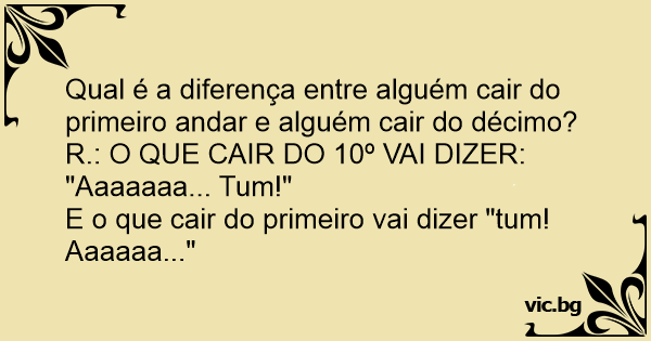 Qual é a diferença entre alguém cair do primeiro andar e alguém cair do décimo?