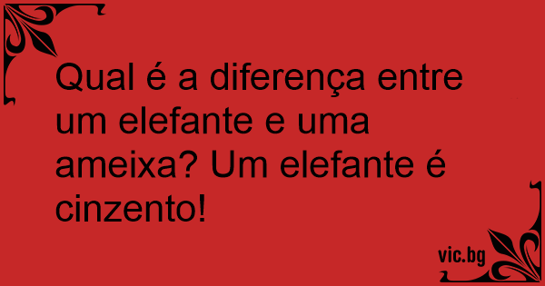 Qual é a diferença entre um elefante e uma ameixa? Um elefante é cinzento!