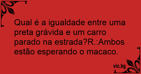 Qual é a igualdade entre uma preta grávida e um carro parado na estrada?R.:Ambos estão esperando o macaco.