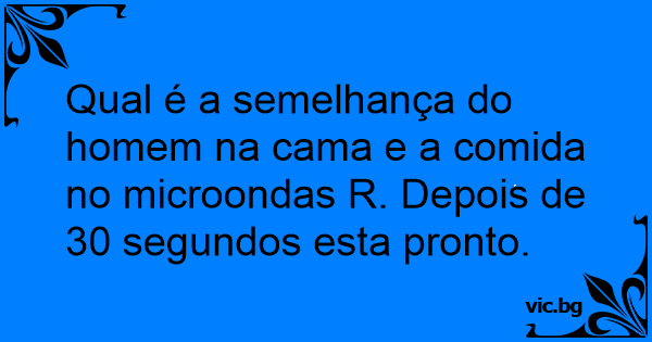 Qual é a semelhança do homem na cama e a comida no microondas R. Depois de 30 segundos esta pronto.