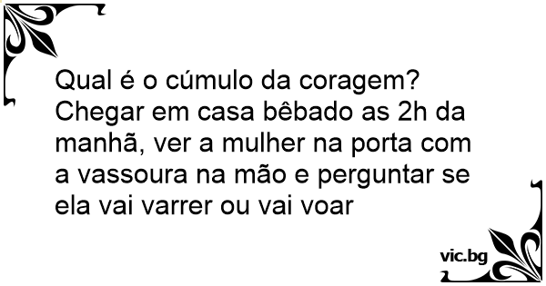 Chegar em casa bêbado as 2h da manhã, ver a mulher na porta com a vassoura na mão e perguntar se ela vai varrer ou vai voar