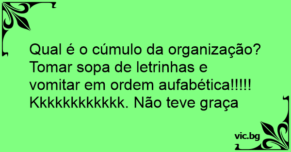 Tomar sopa de letrinhas e vomitar em ordem aufabética!!!!!
