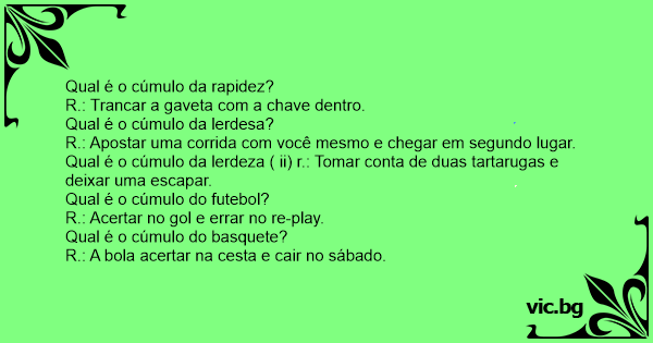 Qual é o cúmulo da lerdeza ( ii) r.: Tomar conta de duas tartarugas e deixar uma escapar.