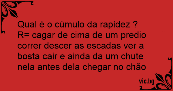 R= саgаr de cima de um predio correr descer as escadas ver a bosta cair e ainda da um chute nela antes dela chegar no chão