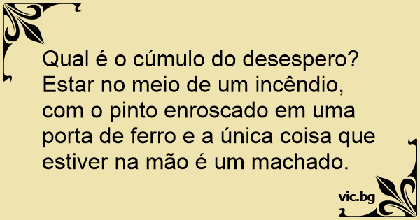 Estar no meio de um incêndio, com o pinto enroscado em uma porta de ferro e a única coisa que estiver na mão é um machado.