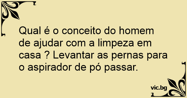 Qual é o conceito do homem de ajudar com a limpeza em casa ? Levantar as pernas para o aspirador de pó passar.