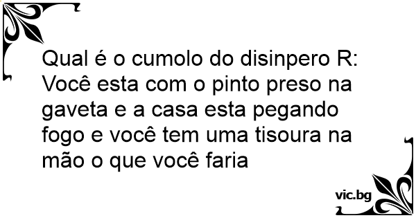 Qual é o cumolo do disinpero R: Você esta com o pinto preso na gaveta e a casa esta pegando fogo e você tem uma tisoura na mão o que você faria
