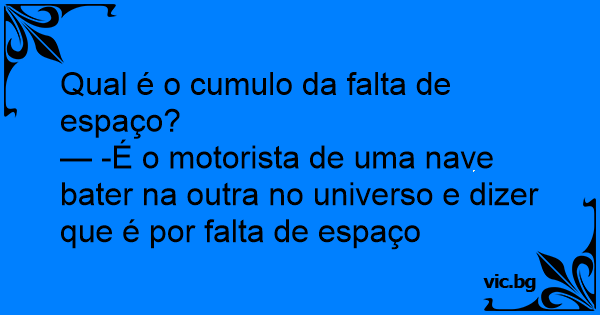 — -É o motorista de uma nave bater na outra no universo e dizer que é por falta de espaço