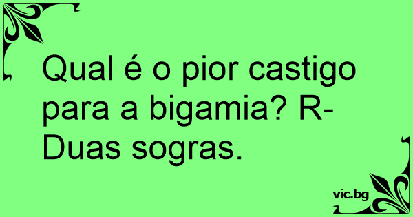 Qual é o pior castigo para a bigamia? R- Duas sogras.