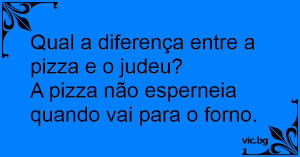 Sabe qual a diferença entre um judeu e a pizza? R: É que a pizza não reclama antes de ir pro forno...