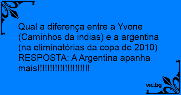 Qual a diferença entre a Yvone(Caminhos da indias) e a argentina (na eliminatórias da copa de 2010) RESPOSTA: A Argentina apanha mais!!!!!!!!!!!!!!!!!!!!!
