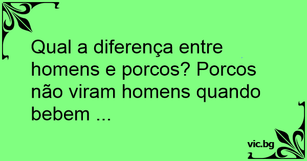 Qual a diferença entre homens e porcos? Porcos não viram homens quando bebem ...