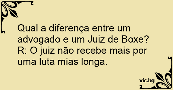 Qual a diferença entre um advogado e um Juiz de Boxe? R: O juiz não recebe mais por uma luta mias longa.