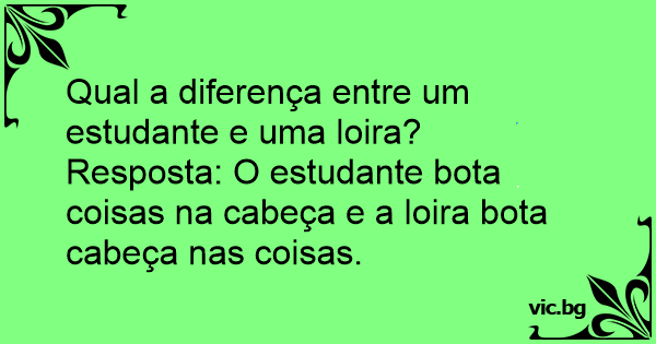 Resposta: O estudante bota coisas na cabeça e a loira bota cabeça nas coisas.