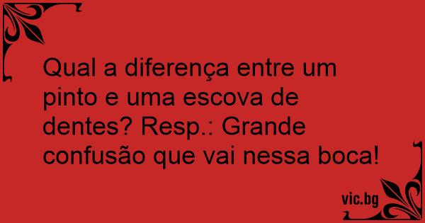 Qual a diferença entre um pinto e uma escova de dentes? Resp.: Grande confusão que vai nessa boca!