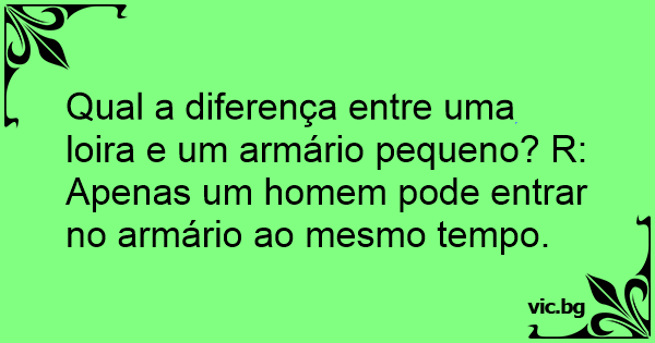 Qual a diferença entre uma loira e um armário pequeno? R: Apenas um homem pode entrar no armário ao mesmo tempo.