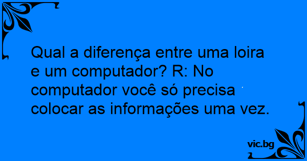 Qual a diferença entre uma loira e um computador? R: No computador você só precisa colocar as informações uma vez.