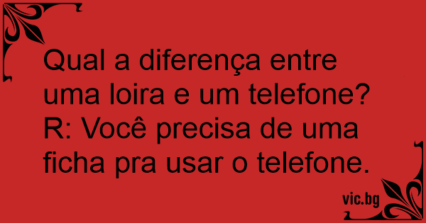 Qual a diferença entre uma loira e um telefone? R: Você precisa de uma ficha pra usar o telefone.