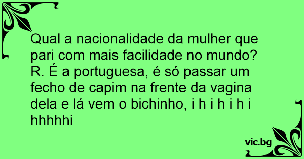 R. É a portuguesa, é só passar um fecho de capim na frente da vаginа dela e lá vem o bichinho, i h i h i h i hhhhhi