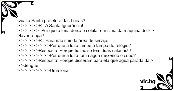 > > > > > >Resposta: Porque disseram para ela que água parada dá > > >dengue.