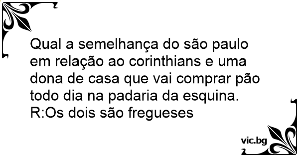 Qual a semelhança do são paulo em relação ao corinthians e uma dona de casa que vai comprar pão todo dia na padaria da esquina.
