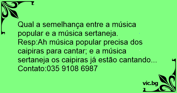 Resp:Ah música popular precisa dos caipiras para cantar; e a música sertaneja os caipiras já estão cantando...