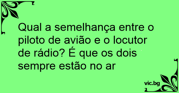 Qual a semelhança entre o piloto de avião e o locutor de rádio? É que os dois sempre estão no ar