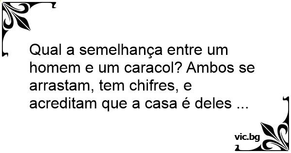 Quais as semlhanças entre o homem e o caracol? R: Tem chifres, babam, se arrastam e ainda pensam que a casa é deles.
