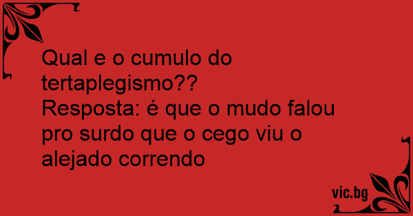 Resposta: é que o mudo falou pro surdo que o cego viu o alejado correndo