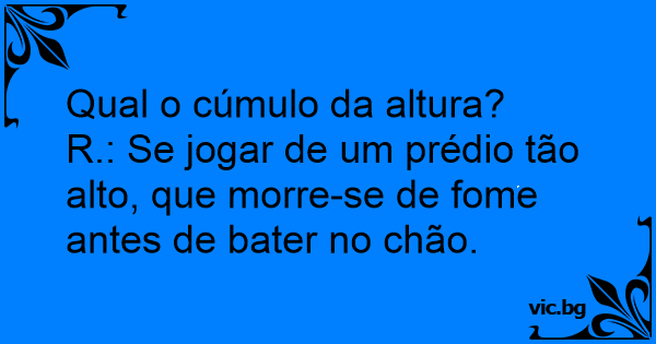 R.: Se jogar de um prédio tão alto, que morre-se de fome antes de bater no chão.