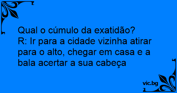 R: Ir para a cidade vizinha atirar para o alto, chegar em casa e a bala acertar a sua cabeça