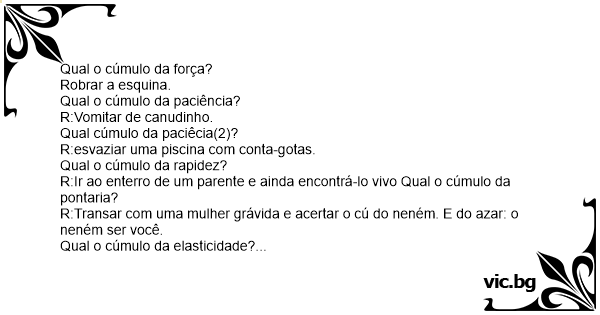 R:Ir ao enterro de um parente e ainda encontrá-lo vivo Qual o cúmulo da pontaria?