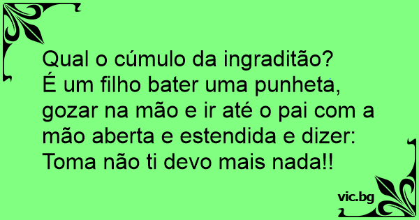 É um filho bater uma рunhета, gozar na mão e ir até o pai com a mão aberta e estendida e dizer: