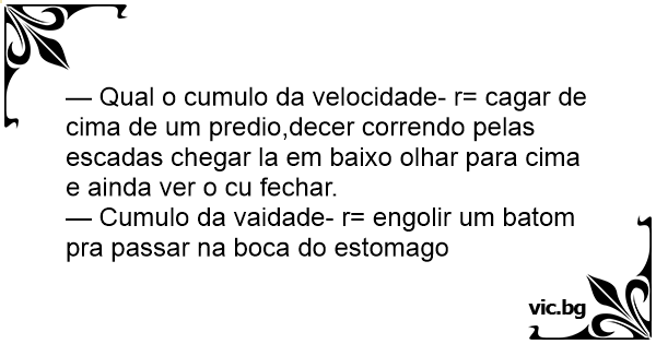 — Qual o cumulo da velocidade- r= саgаr de cima de um predio,decer correndo pelas escadas chegar la em baixo olhar para cima e ainda ver o cu fechar.