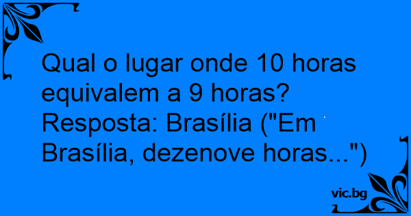 Qual o lugar onde 10 horas equivalem a 9 horas?