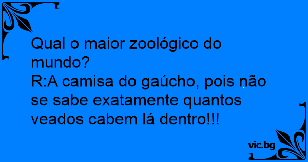 R:A camisa do gaúcho, pois não se sabe exatamente quantos veados cabem lá dentro!!!